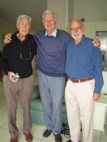 This photo depicts a happy reunion of war buddies in Maroochydore in August this year. Dad and Peter Bailey were in the same Squadron in the war, and were reunited after 60 years without knowing they lived within 10kms of each other for the past 20 years. Also present is Vince Ashworth, representing his brother who was in the same squadron and killed as a fighter pilot in 1944.
